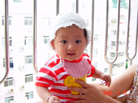 4个月:扎起头发,这样象个小淑女了。 [点击看大图片]