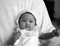 4个月:像个小天使。以后每年4月初我都在这里的爬山虎前留影。 [点击看大图片]